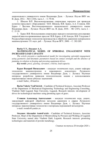 Статья: МАТЕМАТИЧЕСКАЯ МОДЕЛЬ СПИРОИДНОГО ЗАЦЕПЛЕНИЯ ПОВЫШЕННОЙ НАГРУЗОЧНОЙ СПОСОБНОСТИ (2025)