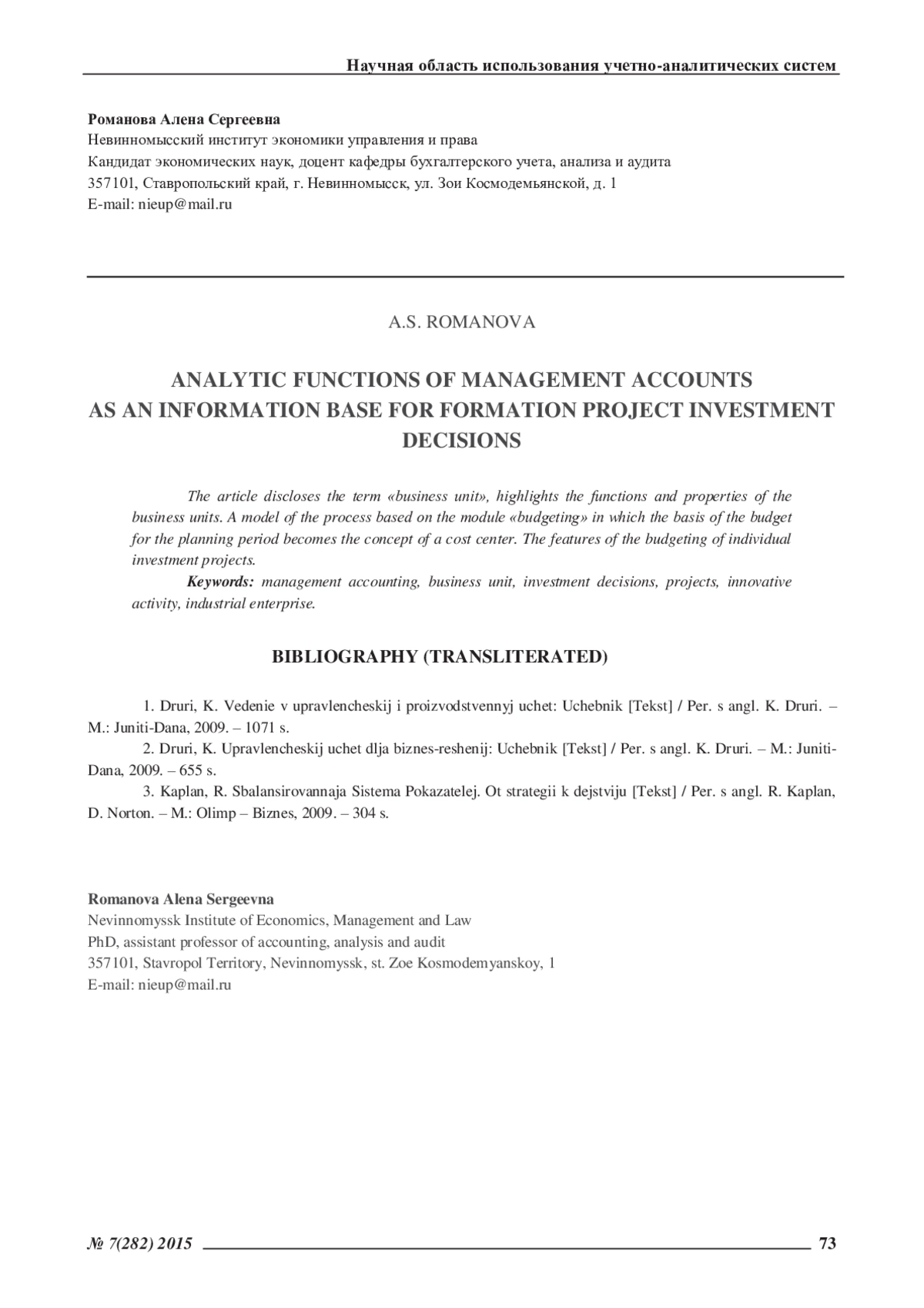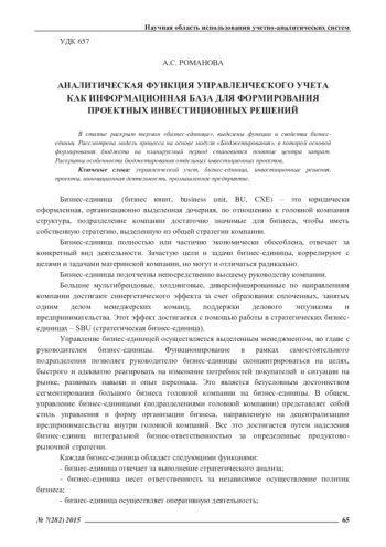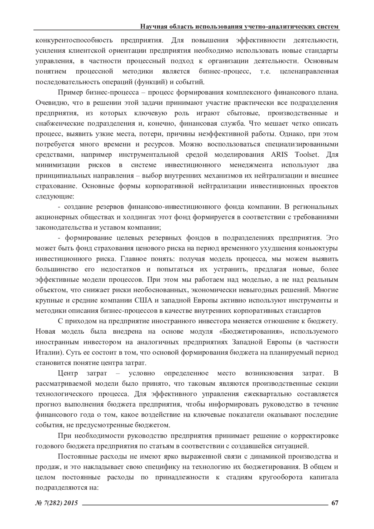 В статье раскрыт термин «бизнес-единица», выделены функции и свойства бизнесединиц. Рассмотрена модель процесса на основе модуля «Бюджетирования», в которой основой формирования бюджета на планируемый период становится понятие центра затрат. Раскрыты особенности бюджетирования отдельных инвестиционных проектов