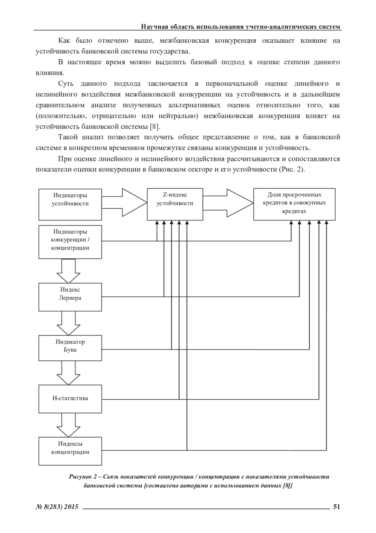 Наличие конкурентных отношений характерно для участников любого рынка, в том числе и финансового. Конкуренция является одним из важнейших факторов изменений, происходящих на банковском рынке, которые могут привести как к укреплению банковского сектора, так и к снижению его устойчивости (о чем свидетельствует наличие концепций «конкуренция – стабильность», «конкуренция – уязвимость») [9, 13].