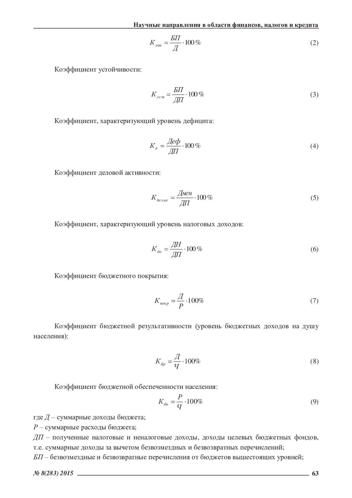 В последнее время уделяется серьезное внимание различным показателям оценки деятельности субъектов РФ. Так, проводится мониторинг соблюдения субъектами РФ требований Бюджетного кодекса РФ, осуществляется оценка кредитоспособности и финансовой устойчивости субъектов РФ. В понятие устойчивости закладывается такое состояние бюджета, при котором обеспечиваются нормальное функционирование субъекта публичной власти, реализация всех закрепленных за ним полномочий на основе полного и своевременного финансирования предусмотренных в бюджете расходов, включая погашение и обслуживание внутреннего и внешнего долга