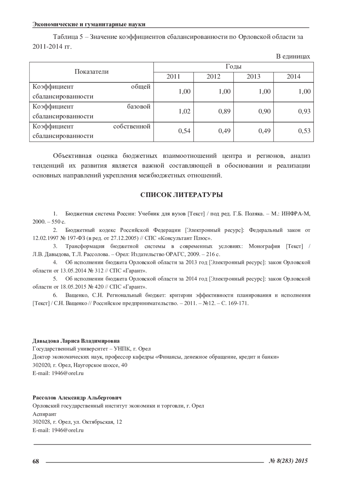 5. Об исполнении бюджета Орловской области за 2014 год [Электронный ресурс]: закон Орловской области от 18.05.2015 № 420 // СПС «Гарант».