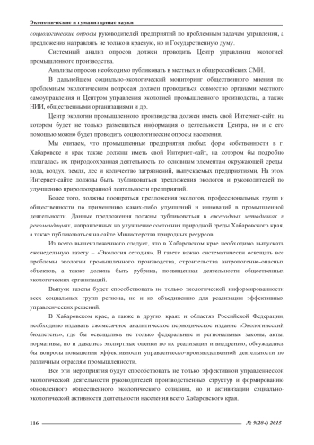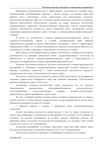 В настоящее время проблемы взаимосвязи экологического сознания руководителей предприятий, общественности и эффективного управления являются недостаточно изученными. В статье проанализирован социально-экологический опрос управленцев, экологов и представителей природоохранных организаций. Внесены предложения по активизации общественной экологической деятельности в Хабаровском крае
