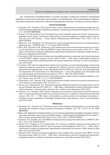 3. Иваненко, А.Р., Калабина, Е.Г. Возможности использования динамического ценообразования в сфере ритейла. eFORUM. 2021. Т. 5, № 2(15). EDN: SVXYZJ.