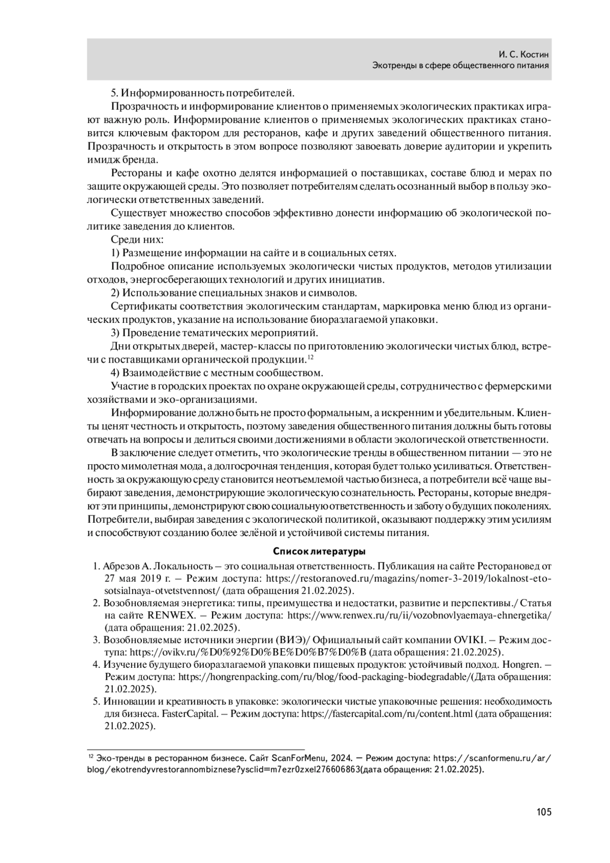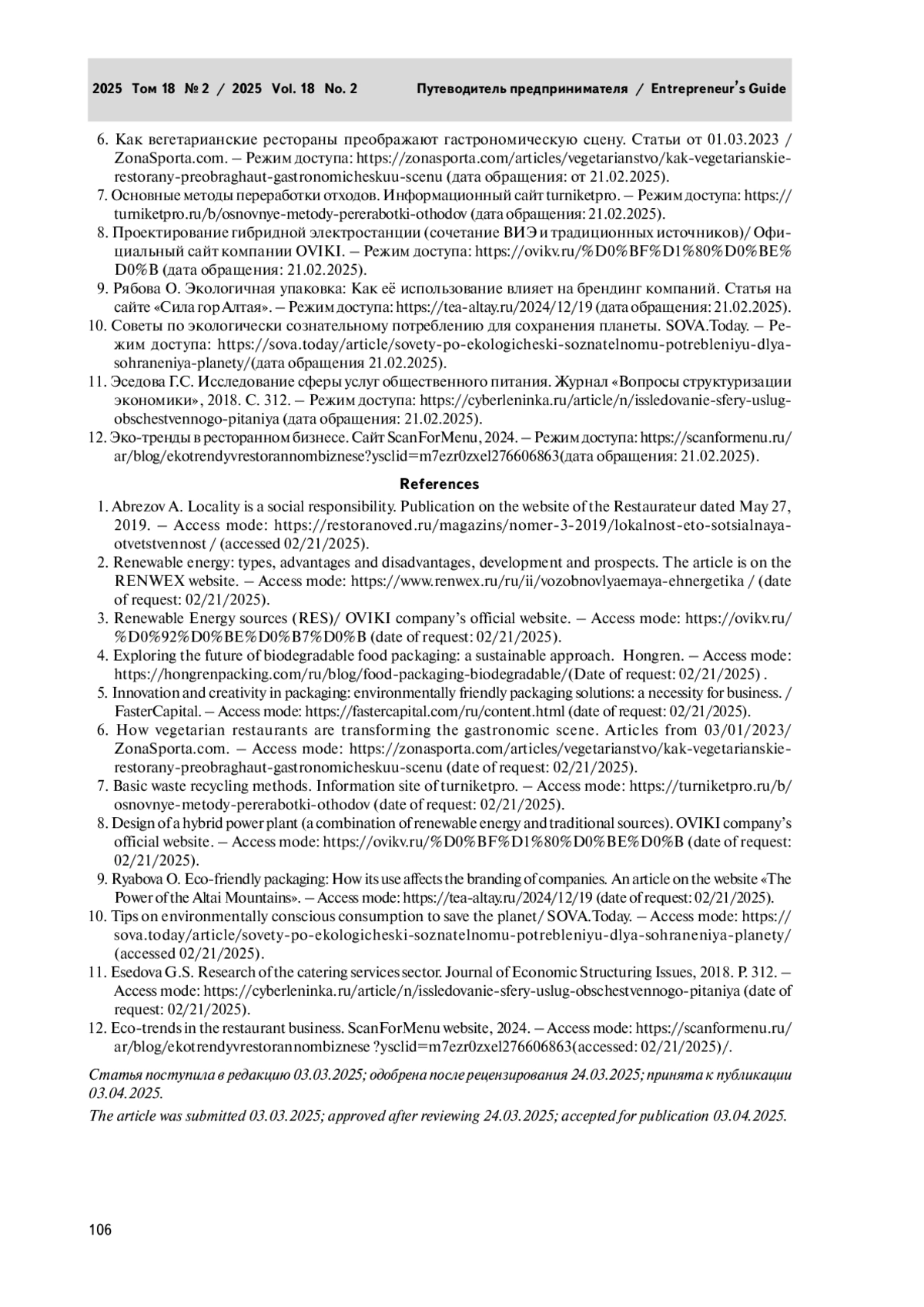 12. Экотренды в ресторанном бизнесе. Сайт ScanForMenu, 2024. - Режим доступа: https://scanformenu.ru/ar/blog/ekotrendyvrestorannombiznese?ysclid=m7ezr0zxel276606863 (дата обращения: 21. 02. 2025).