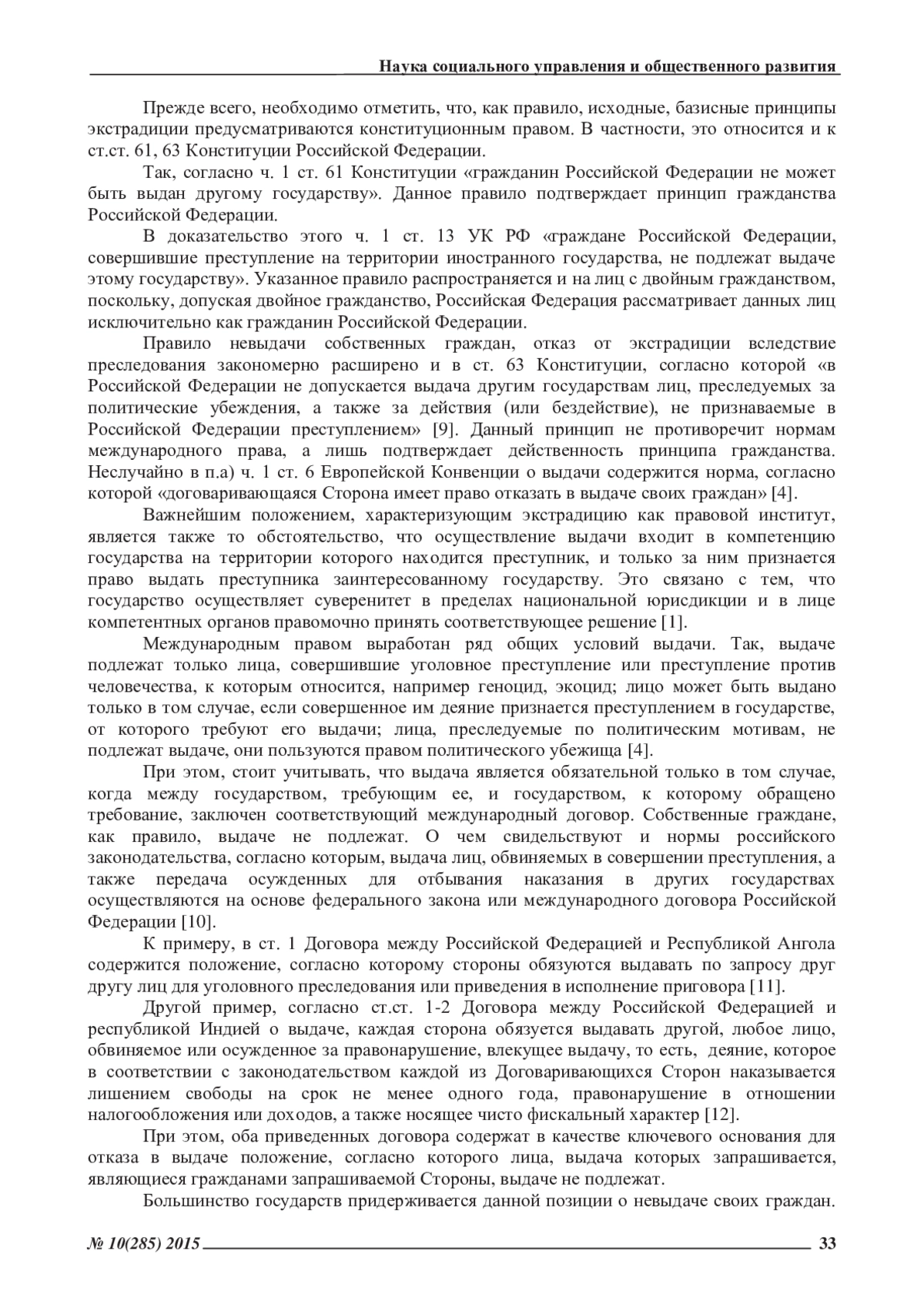 6. Измайлова, П.Р. Проблемы экстрадиции в международном публичном праве [Текст] / П.Р. Измайлова // Труды Института государства и права Российской академии наук. - 2010. - № 5. - С. 46. EDN: TXTZXP