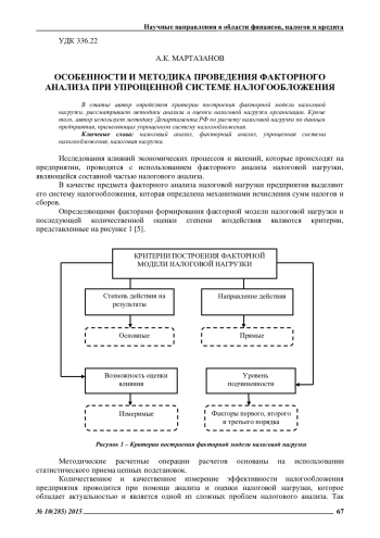 В качестве предмета факторного анализа налоговой нагрузки предприятия выделяют его систему налогообложения, которая определена механизмами исчисления сумм налогов и сборов
