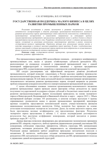 1. Автореферат «Развитие организационно-экономического механизма формирования промышленных парков» [Текст] / С.Н. Кузнецова. - Иваново, ИвГУ, 2013. - 24 с.