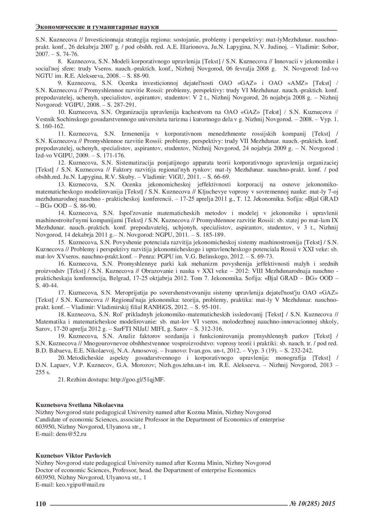 10. Кузнецова, С.Н. Организация управления качеством на ОАО «ГАЗ» [Текст] / С.Н. Кузнецова // Вестник Сочинского государственного университета туризма и курортного дела в г. Нижний Новгород. - 2008. - Вып. 1. - С. 160-162.