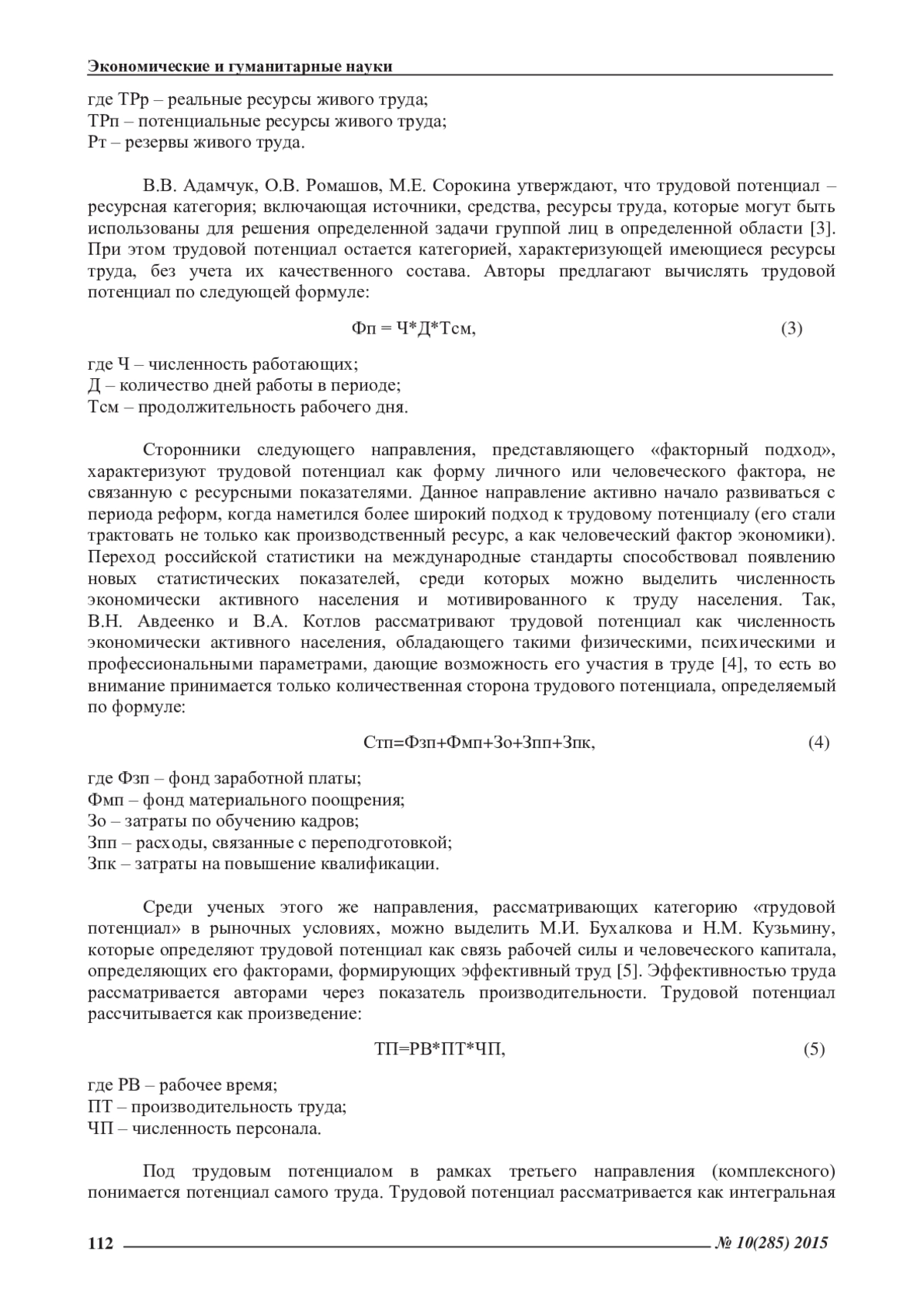 5. Бухалков, М.И. Оценка трудового потенциала как основа его эффективного использования [Текст] / М.И. Бухалков, Н.М. Кузьмина // Человек и труд. - 2003. - № 2. - С. 29-30.