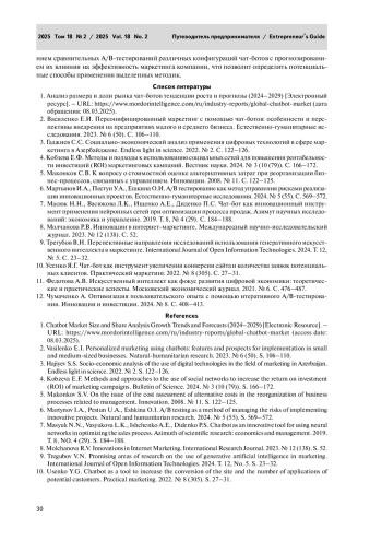 10. Усенко Я.Г. Чатбот как инструмент увеличения конверсии сайта и количества заявок потенциальных клиентов. Практический маркетинг. 2022. № 8 (305). С. 27-31.