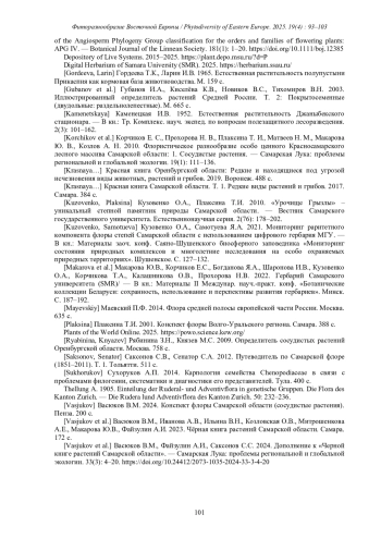 15. [Plaksina] Плаксина Т.И. 2001. Конспект флоры Волго-Уральского региона. Самара. 388 с. EDN: ZONIFT
