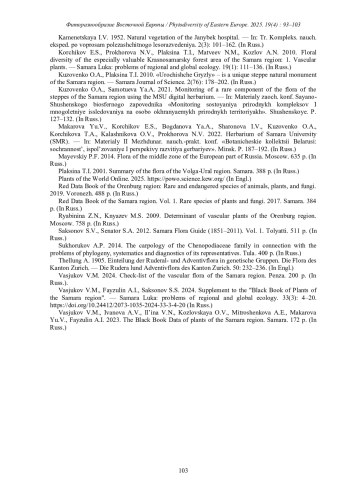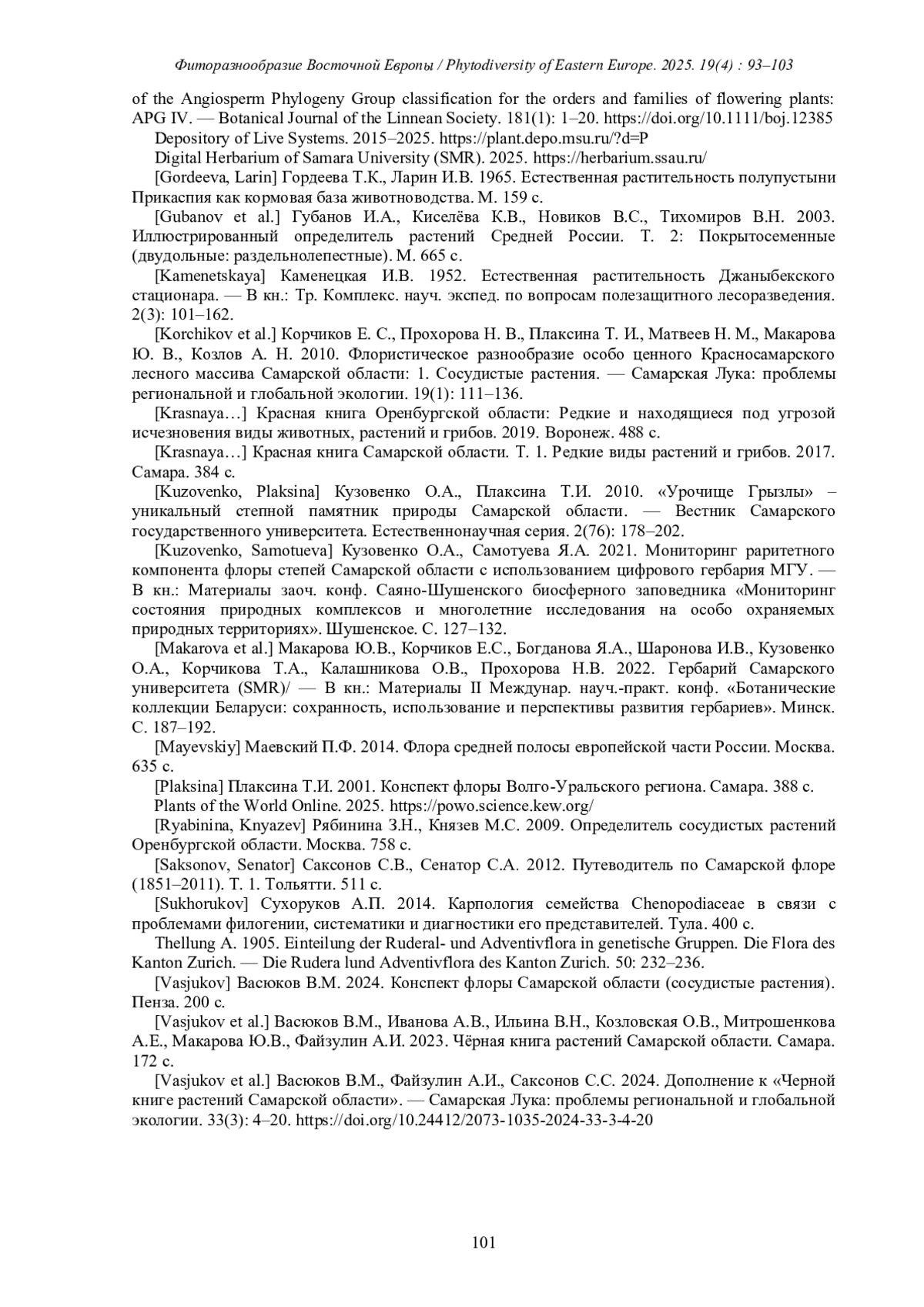 23. [Vasjukov et al.] Васюков В.М., Файзулин А.И., Саксонов С.С. 2024. Дополнение к “Черной книге растений Самарской области”. - Самарская Лука: проблемы региональной и глобальной экологии. 33(3): 4-20. DOI: 10.24412/2073-1035-2024-33-3-4-20 EDN: HNQTRT