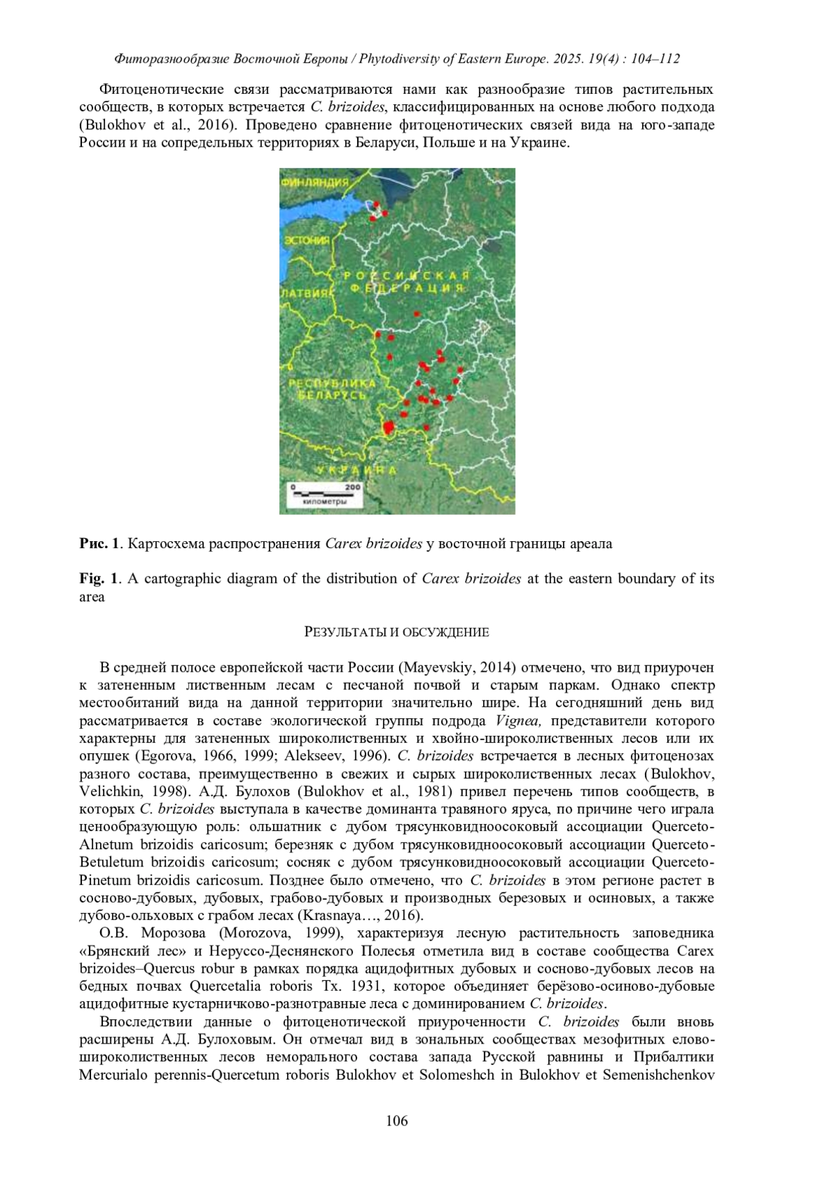 6. [Bulokhov, Radygina] Булохов А.Д., Радыгина В.И. 2012. Сообщества с Carex brizoides L. (Cyperaceae) на восточном пределе ареала. - Вестник Брянского государственного университета. 4(2): 113-116. EDN: RDGVHF