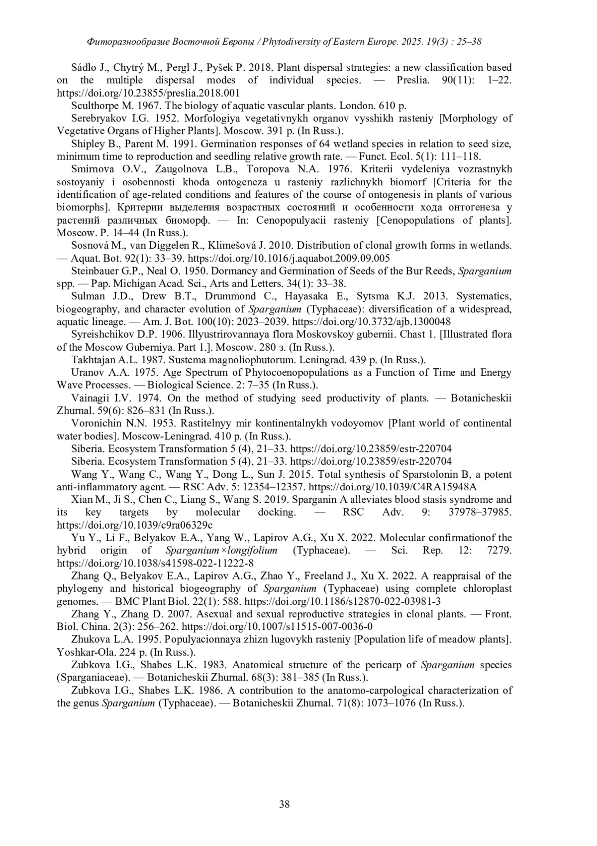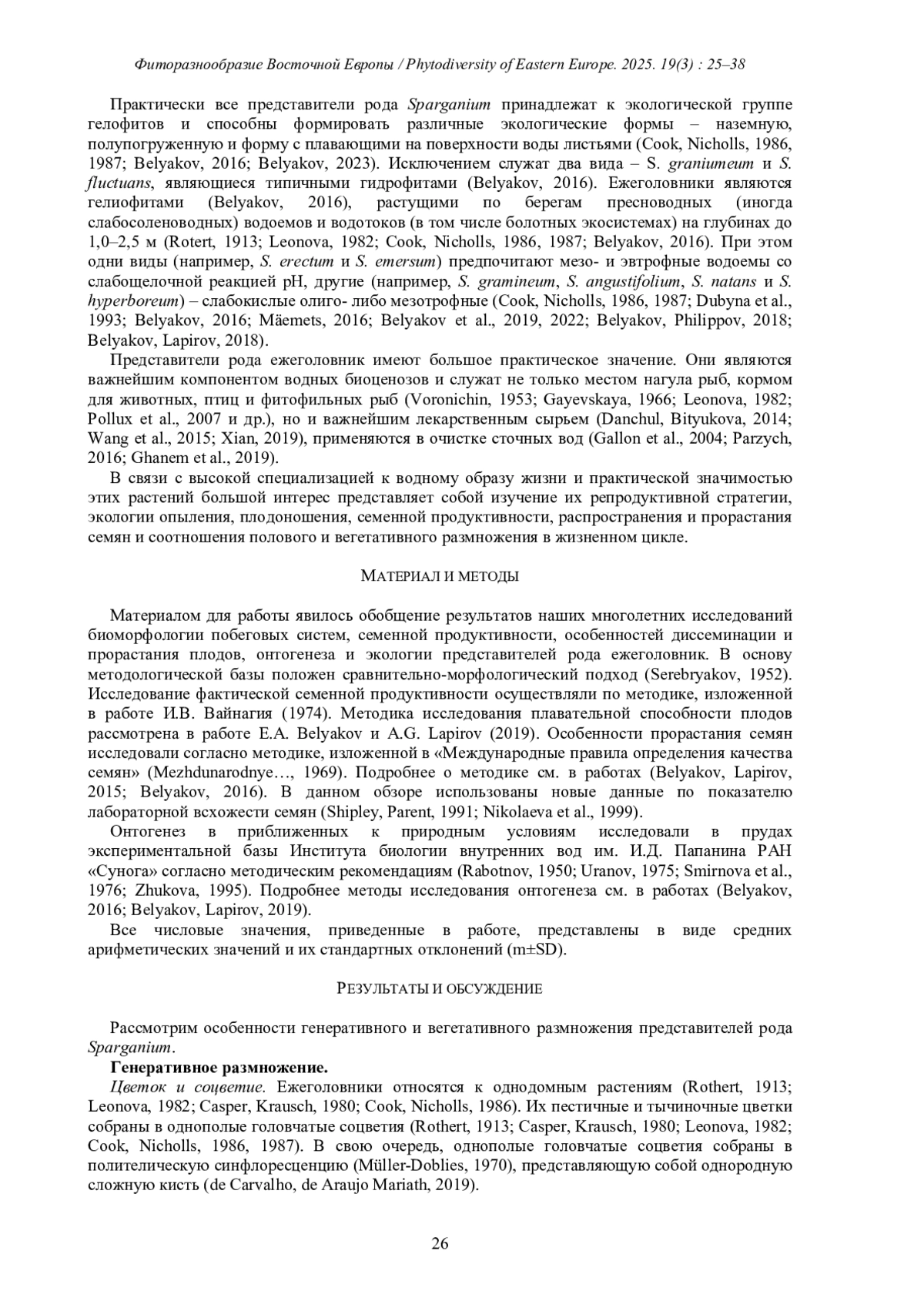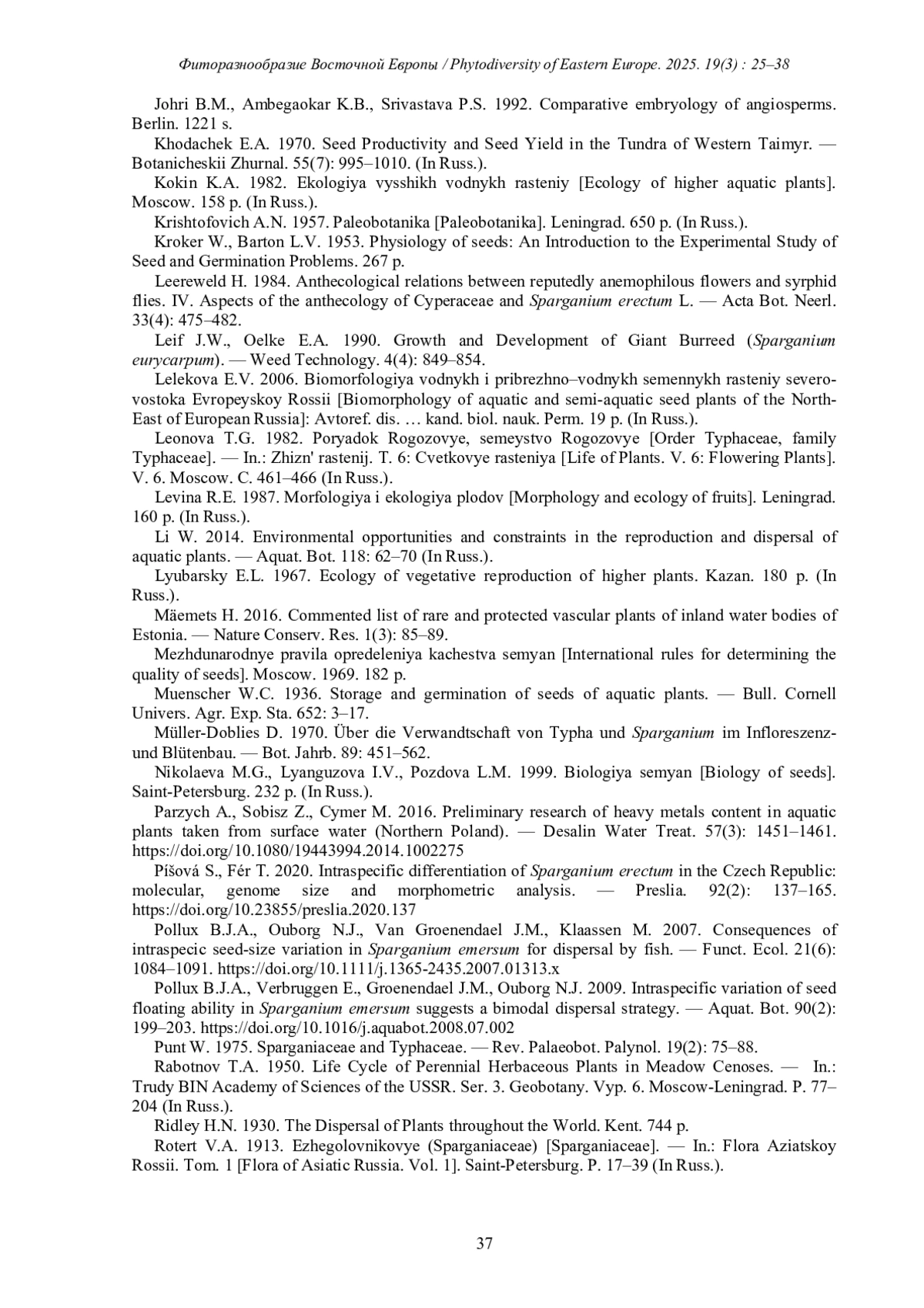 8. [Belyakov, Lapirov] Беляков Е.А., Лапиров А.Г. 2015. Прорастание плодов некоторых представителей семейства Sparganiaceae Rudolphi в лабораторных условиях. - Биол. внутр. вод. 1: 38-42. DOI: 10.7868/S0320965215010039 EDN: THHZJR