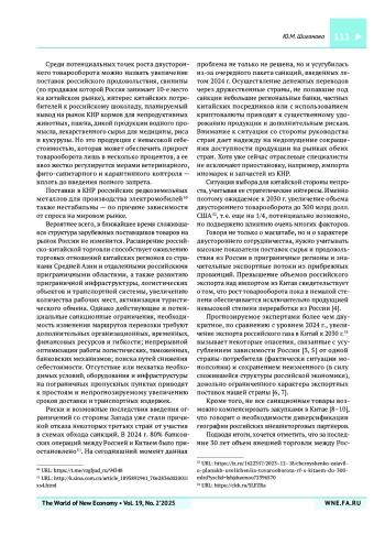 1. Изотов Д.А. Торговые взаимодействия КНР с российским рынком: проблемы интенсификации. Азия и Африка сегодня. 2023;(10):5-14. https://doi.org/10.31857/S 032150750028103-5