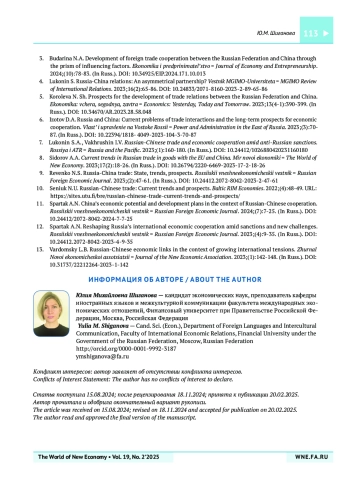 8. Сидоров А.А. Актуальные тенденции торговли товарами России с ЕС и Китаем. Мир новой экономики. 2023;17(2):18-26. https://doi.org/10.26794/2220-6469-2023-17-2-18-26