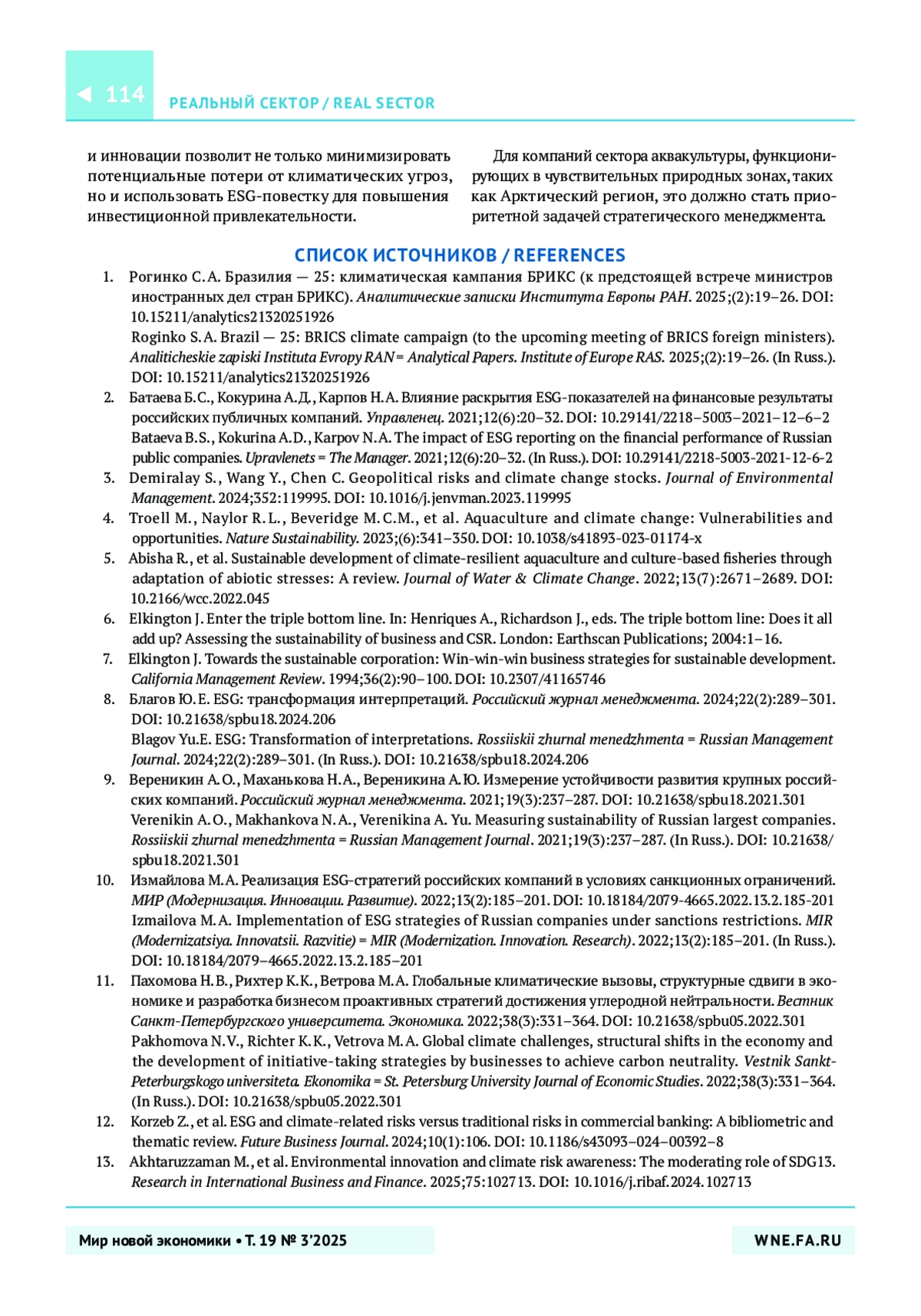 8. Благов Ю.Е. ESG: трансформация интерпретаций. Российский журнал менеджмента. 2024;22(2):289-301. https://doi.org/10.21638/spbu18.2024.206