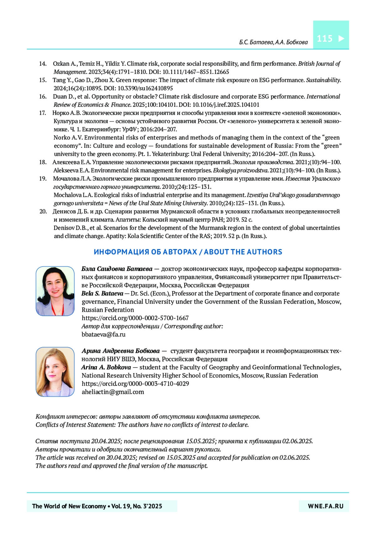 16. Duan D., et al. Opportunity or obstacle? Climate risk disclosure and corporate ESG performance. International Review of Economics & Finance. 2025;100:104101. https://doi.org/10.1016/j.iref.2025.104101