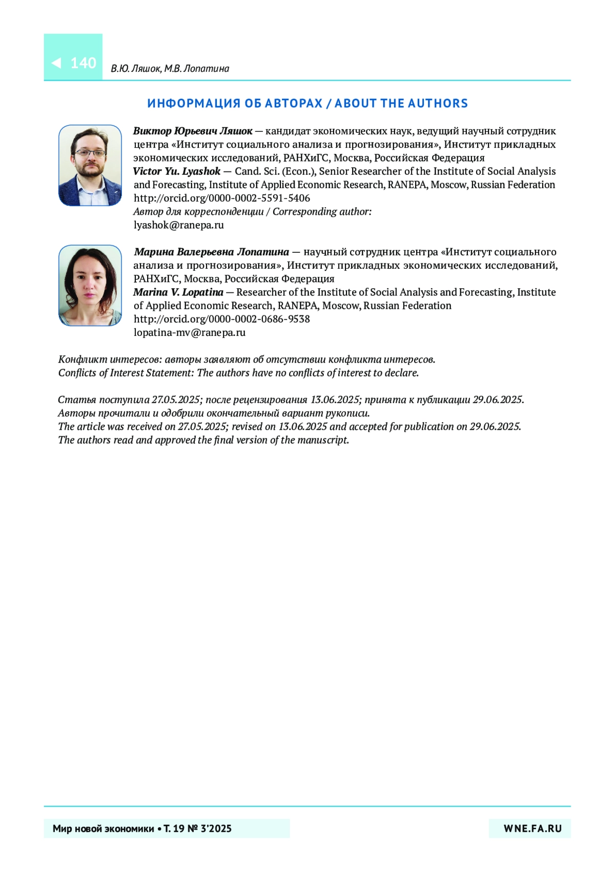 25. Полякова А.Г., Черемных А.А., Ляшок В.Ю., Гришина Е.Е. Социально-экономическое положение населения в период пандемии весной 2020 г. (по результатам регулярного Мониторинга ИНСАП РАНХиГС). Экономическое развитие России. 2020;27(7):94-111