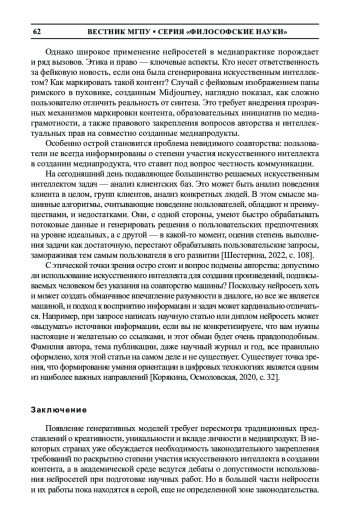 3. Шестерина А. М. Влияние технологий искусственного интеллекта на видеопроизводство в сфере продвижения сетевого контента // Вестник ЮУрГУ. Серия “Социально-гуманитарные науки”. 2022. Т. 22. № 1. С. 108-112. DOI: 10.14529/ssh220114