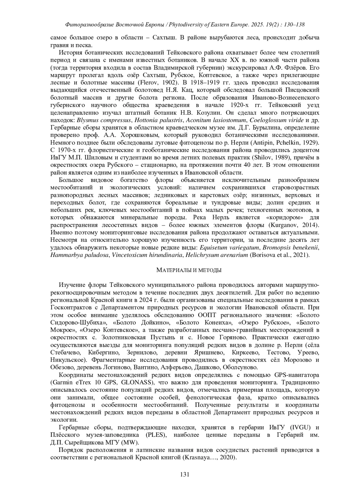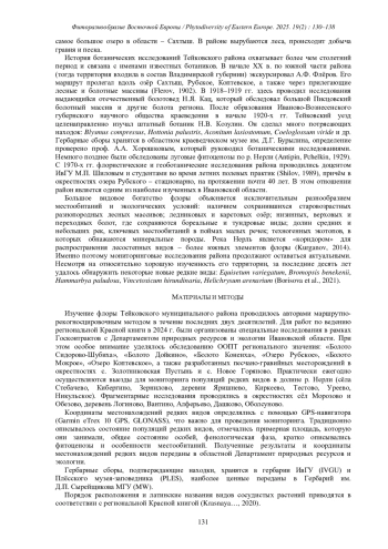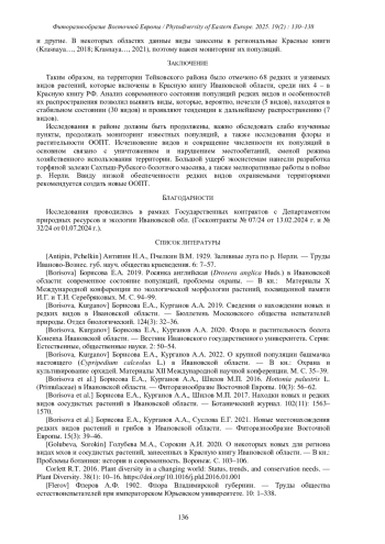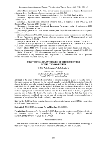 8. [Borisova et al.] Борисова Е.А., Курганов А.А., Суслова Е.Г. 2021. Новые местонахождения редких видов растений и грибов в Ивановской области. - Фиторазнообразие Восточной Европы. 15(3): 39-46. EDN: VGSPUS