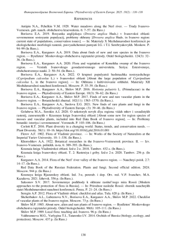 20. [Shcherbakov et al.] Щербаков А.В., Любезнова Н.В., Борисова Е.А., Курганов А.А., Шилов М.П. 2022. Список сосудистых растений Ивановской области. М. 73 с.