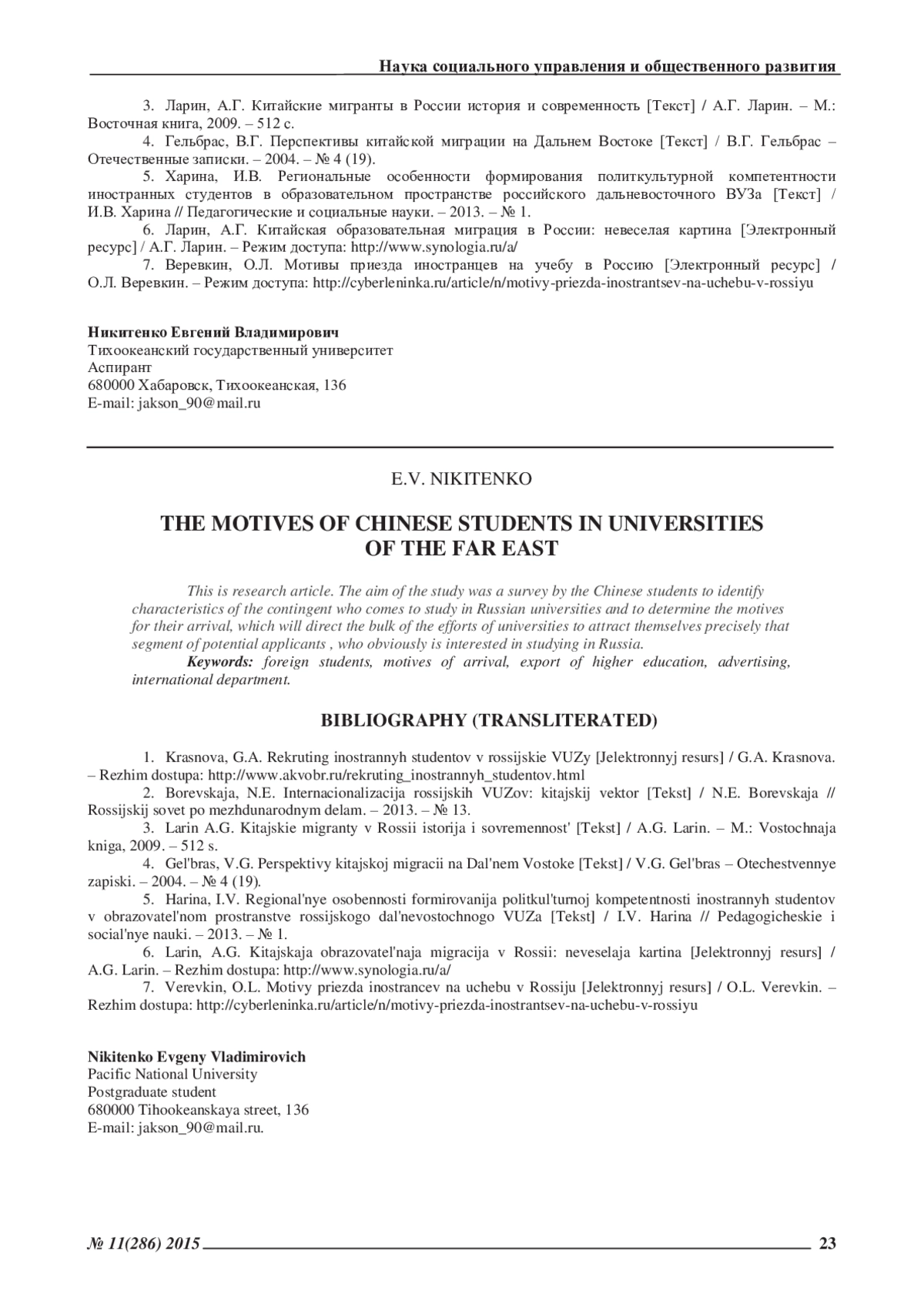 6. Ларин, А.Г. Китайская образовательная миграция в России: невеселая картина [Электронный ресурс] / А.Г. Ларин. - Режим доступа: http://www.synologia.ru/a.