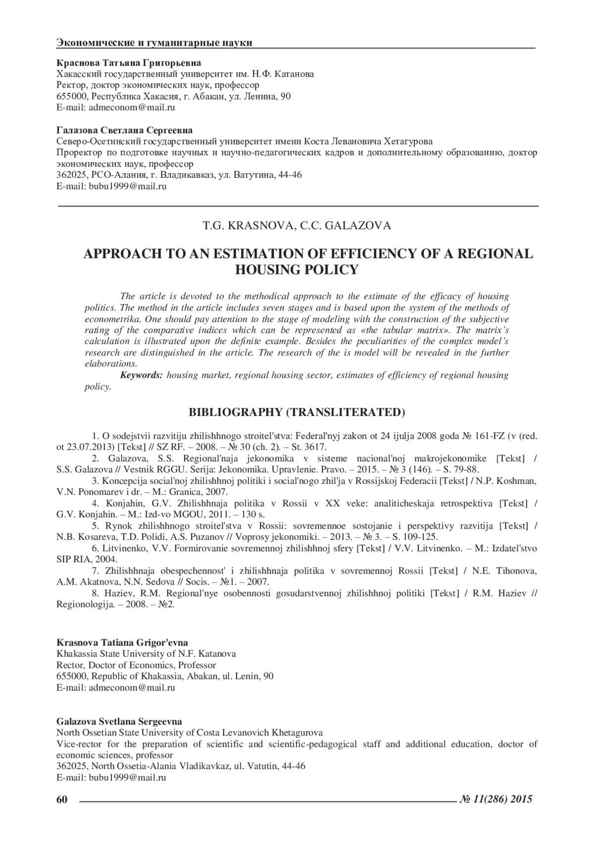 Статья посвящена методическим подходам формирования модели оценки эффективности жилищной политики. Основой методологии является подход, базирующийся на системе методов econometrika. Оцениваются субъективные рейтинги сравнительных индексов, которые могут быть представлены как «табличная матрица». Анализируются особенности исследования жилищного сектора различных регионов и факторы их формирующие. Исследование и возможности применения приведенной модели первоначальны, постановочны и дискуссионны