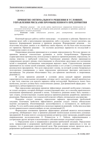 Принятие решения – это всегда выбор определенного направления деятельности из нескольких возможных. В статье рассмотрены виды решений, критерии их принятия, сравнение альтернатив и механизм реализации