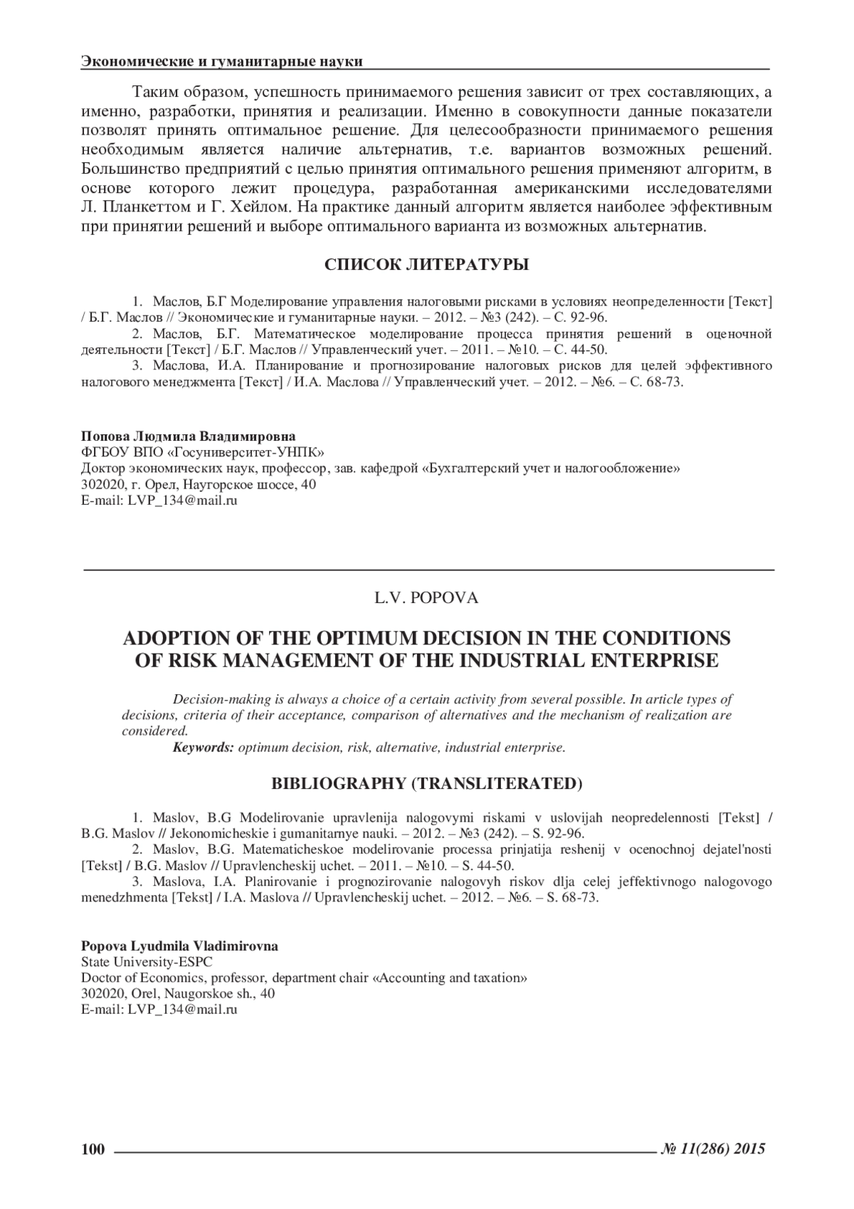 1. Маслов, Б.Г Моделирование управления налоговыми рисками в условиях неопределенности [Текст] / Б.Г. Маслов // Экономические и гуманитарные науки. - 2012. - №3 (242). - С. 92-96. EDN: OWWLPP