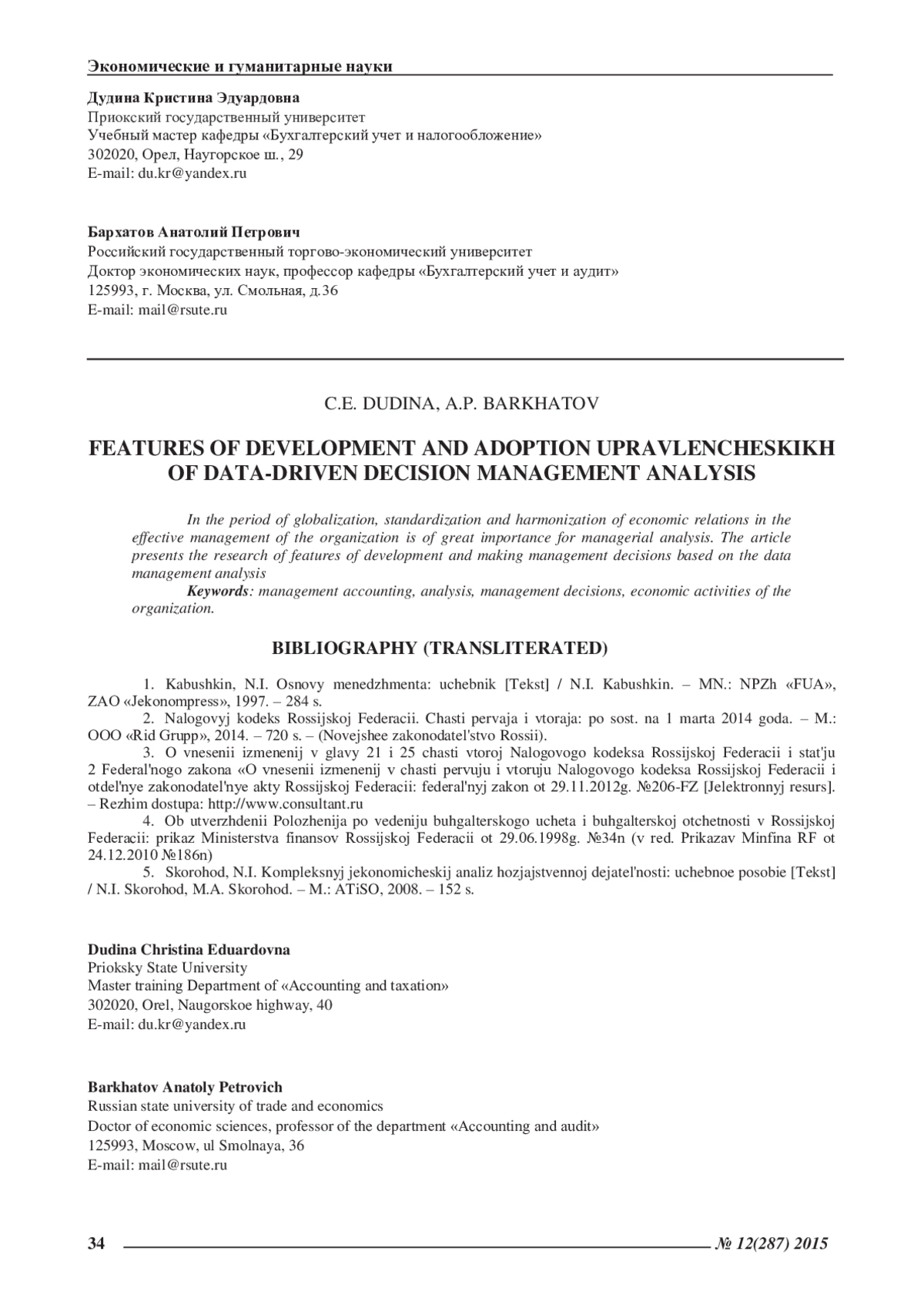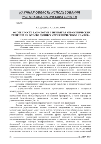 В период глобализации, стандартизации и унификации экономических отношений в целях эффективного управления организацией большое значение имеет управленческий анализ. В статье представлено исследование особенностей разработки и принятия управленческих решений на основе данных управленческого анализа