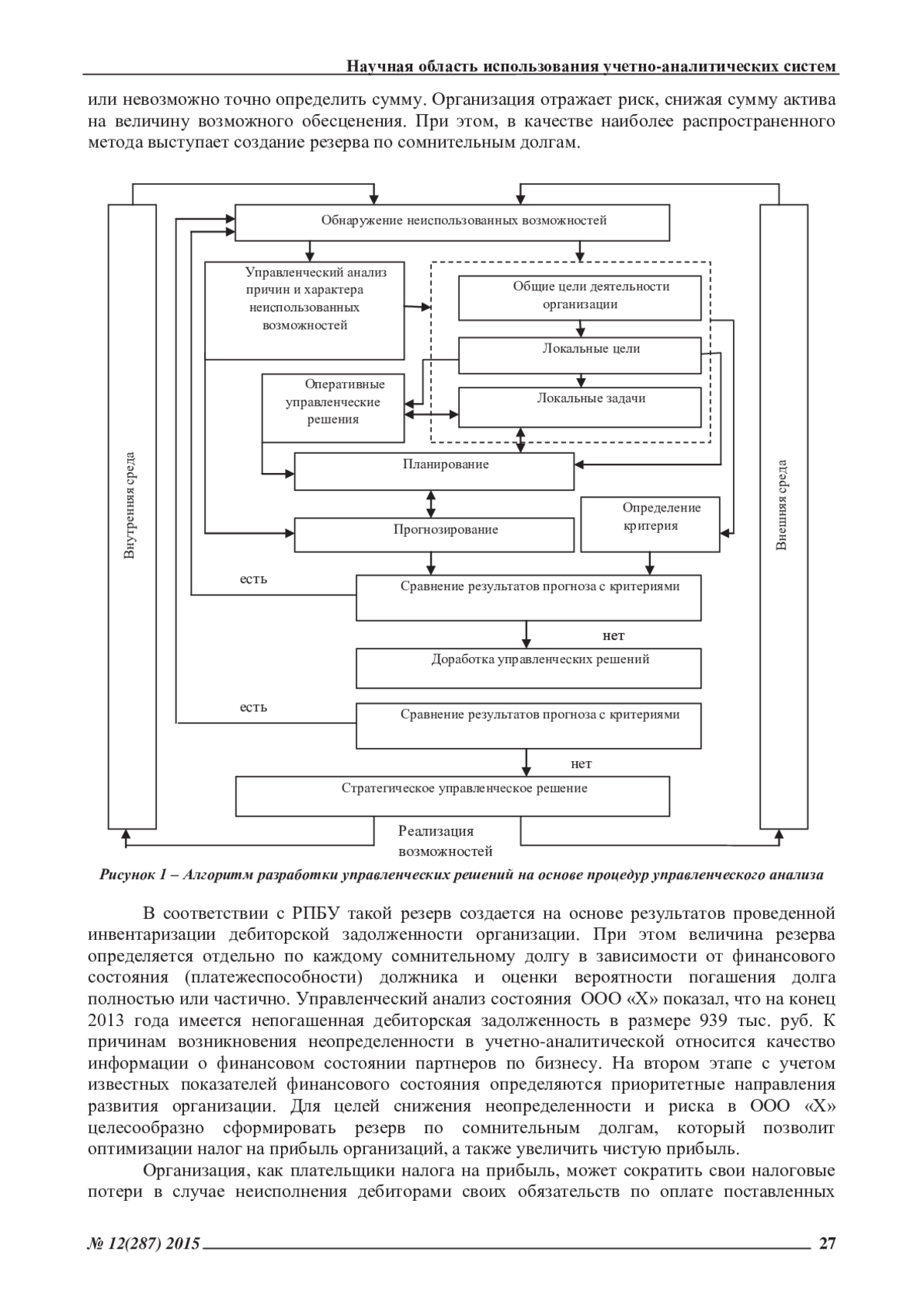 Управленческий анализ – это исследование хозяйственной деятельности предприятия, направленное на обеспечение менеджеров необходимой информацией для целей принятия эффективных управленческих решений. Данный вид анализа включает в себя производственный и финансовый анализ, без которого менеджеры организации не могут осуществлять свою финансовую стратегию. Цель управленческого анализа состоит в обеспечении аналитическими данными процесса принятия решений административноуправленческим персоналом, т. е. она заключается в обосновании управленческих решений [5]. Принятие управленческого решения в условиях неопределенности – важнейший вид управленческого труда, а также совокупность взаимосвязанных, целенаправленных и логически последовательных управленческих действий, которые обеспечивают реализацию управленческих задач