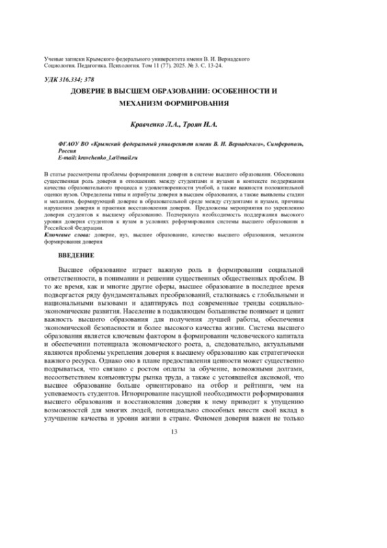 7. Стуканова С. С., Стуканова И. П. Феномен доверия в системе высшего образования / С. С. Стуканова, И. П. Стуканова // Экономические и социально-гуманитарные исследования. - 2023. - № 1 (37). - С. 93-102. EDN: SOPFEM