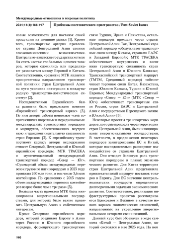 Статья: Роль транспортных коридоров в развитии Центральной Азии (2025)
