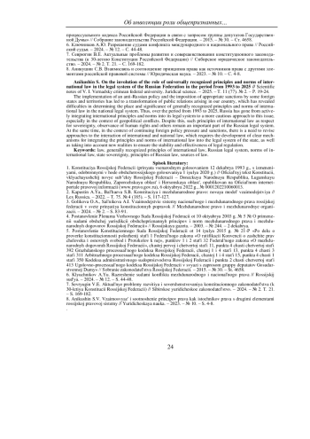 2. Капустин А.Я., Бальхаева С.Б. Конституция и международное право: новая модель взаимодействия // Lex Russica. - 2022. - Т. 75. № 4 (185). - С. 117-127.