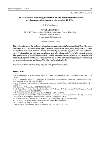 A. V. Pravdivtsev The influence of lens design elements on the additional irradiance of photo-sensitive elements of uncooled IR FPA 79