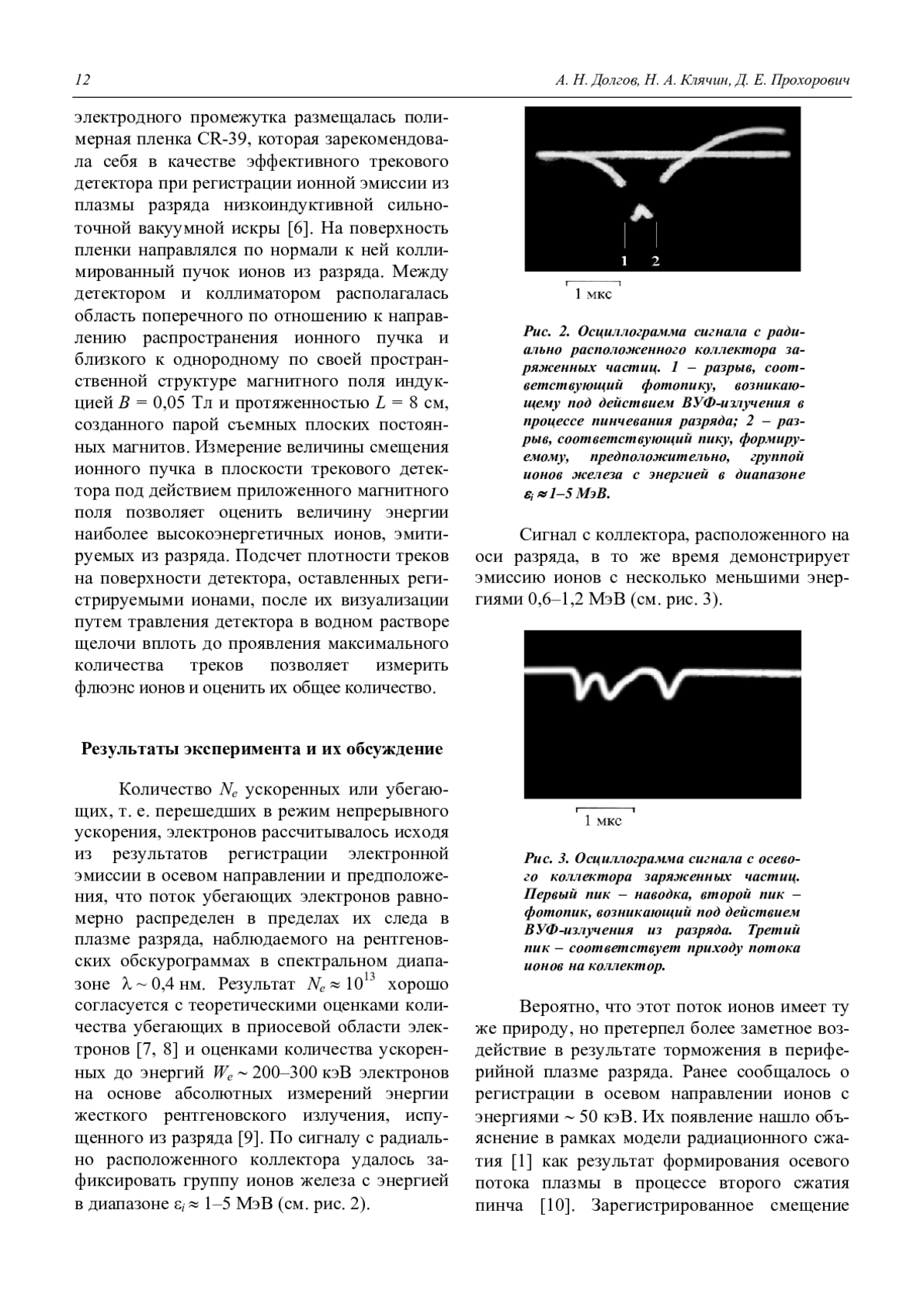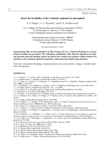 Ключевые фразы: микропинчевый разряд, УБЕГАЮЩИЕ ЭЛЕКТРОНЫ, избыточный положитель- ный заряд, кулоновский взрыв плазмы