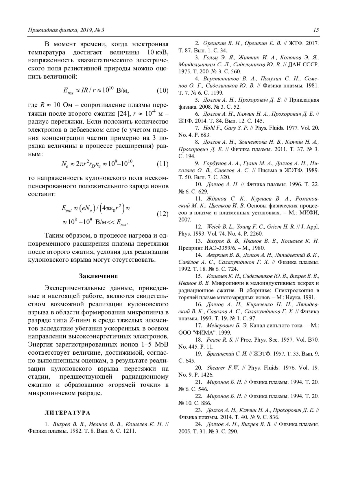 ДОЛГОВ А. Н., КЛЯЧИН Н. А., ПРОХОРОВИЧ Д. Е. О РЕАЛИЗАЦИИ КУЛОНОВСКОГО ВЗРЫВА В МИКРОПИНЧЕ // ПРИКЛАДНАЯ ФИЗИКА. 2019. №3