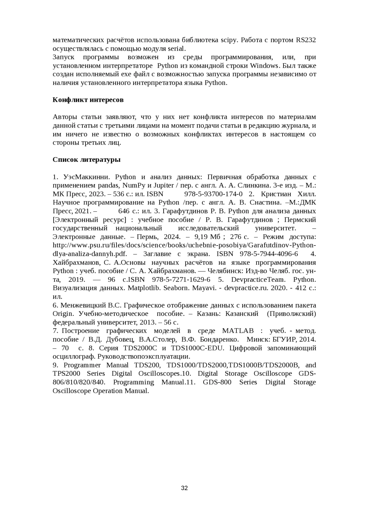 Статья: Обработка данных физического эксперимента с использованием языка программирования Python (2024)
