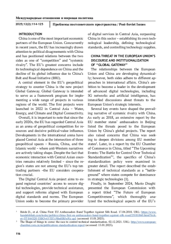 Статья: Проект Цифровой взаимосвязанности для Центральной Азии как механизм противостояния ЕС и Китая (2025)