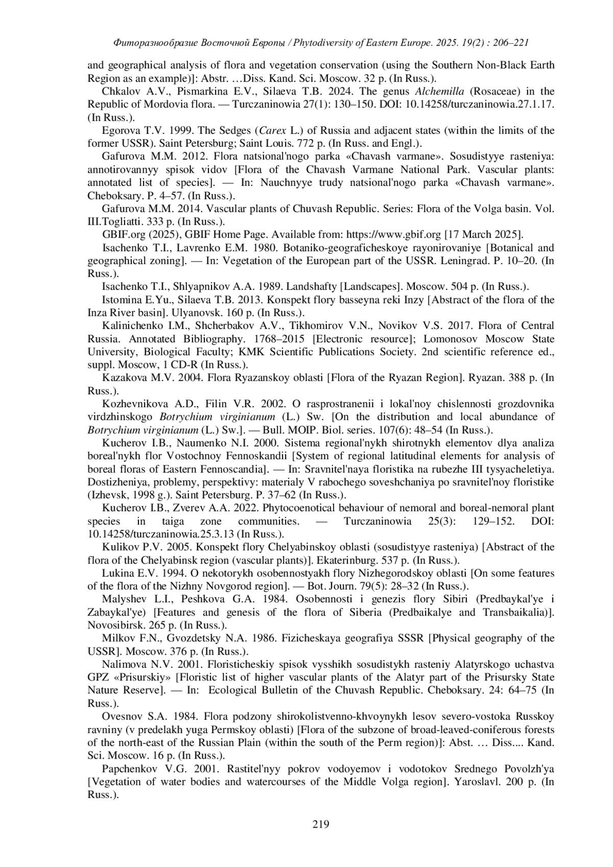 7. [Chkalov et al.] Чкалов А.В., Письмаркина Е.В., Силаева Т.Б. 2024. Род Alchemilla (Rosaceae) во флоре Республики Мордовия (Россия). - Turczaninowia. 27(1): 130-150. DOI: 10.14258/turczaninowia.27.1.17 EDN: TNFOWD