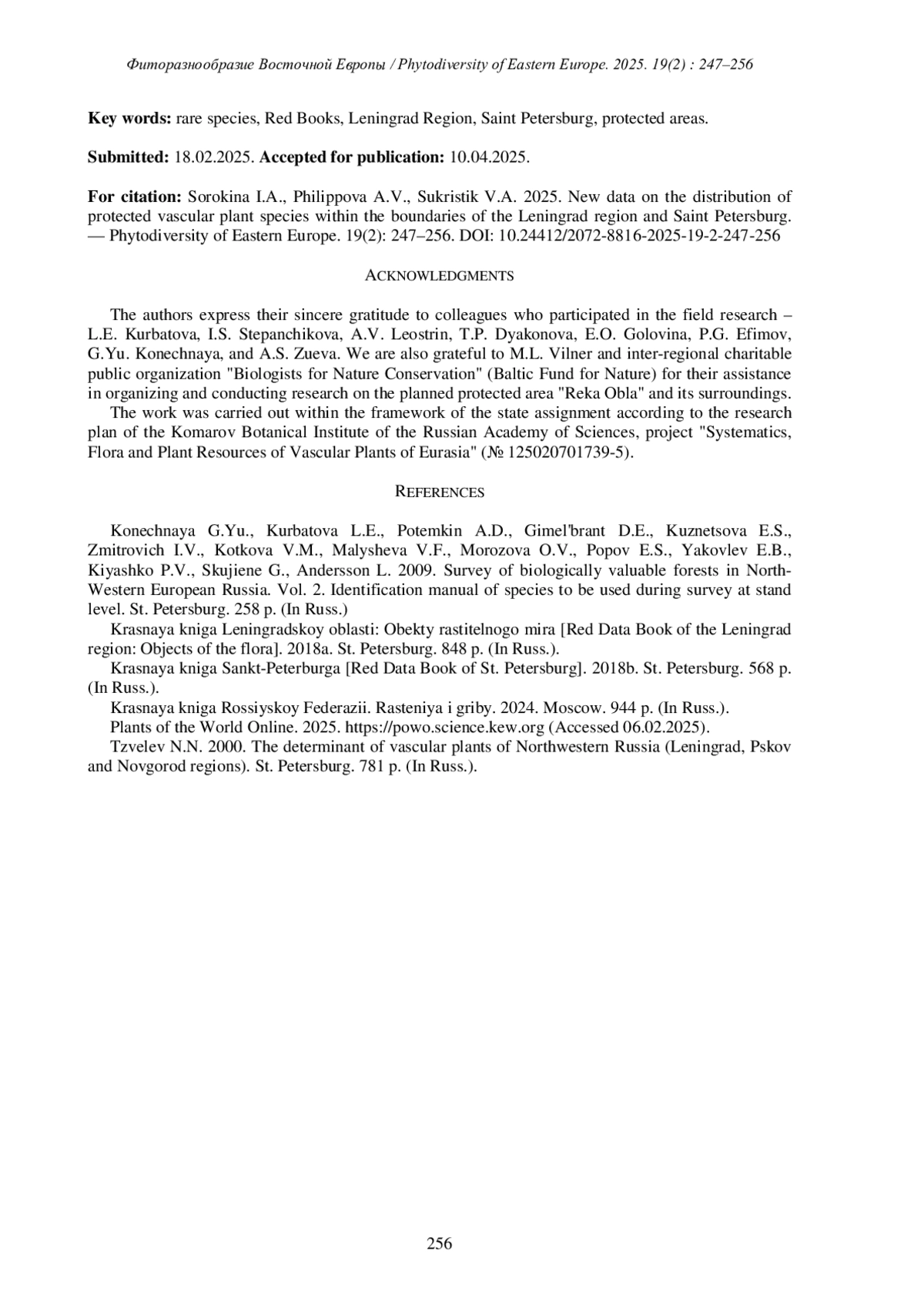 3. [Krasnaya…] Красная книга Санкт-Петербурга. 2018b. СПб. 568 с. [Krasnaya…] Красная книга Российской Федерации. Растения и грибы. 2024. М. 944 с.