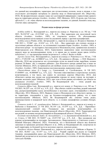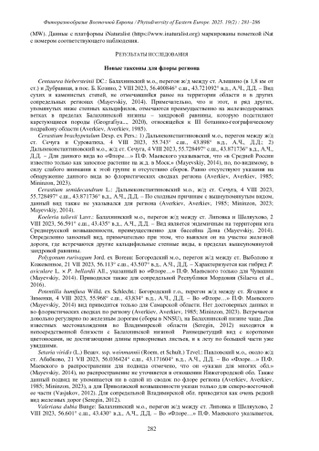 9. [Silaeva et al.] Силаева Т.Б., Хапугин А.А., Письмаркина Е.В., Варгот Е.В., Агеева А.М. 2016. Дополнения к “Флоре…” П.Ф. Маевского (2014) по Республике Мордовия и сопредельным регионам. - Труды Карельского научного центра РАН. 3: 29-37.