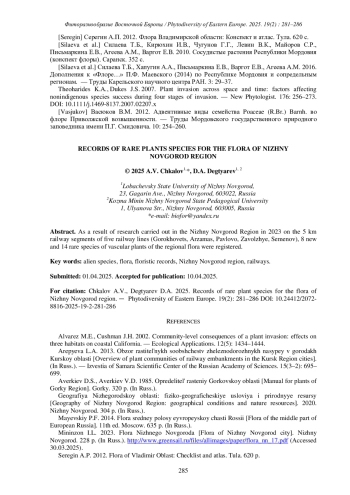 6. [Mininzon] Мининзон И.Л. 2023. Флора Нижнего Новгорода. Н. Новгород. 228 с. http://www.greensail.ru/files/allimages/paper/flora_nn_17.pdf (Дата обращения: 30.03.2025).