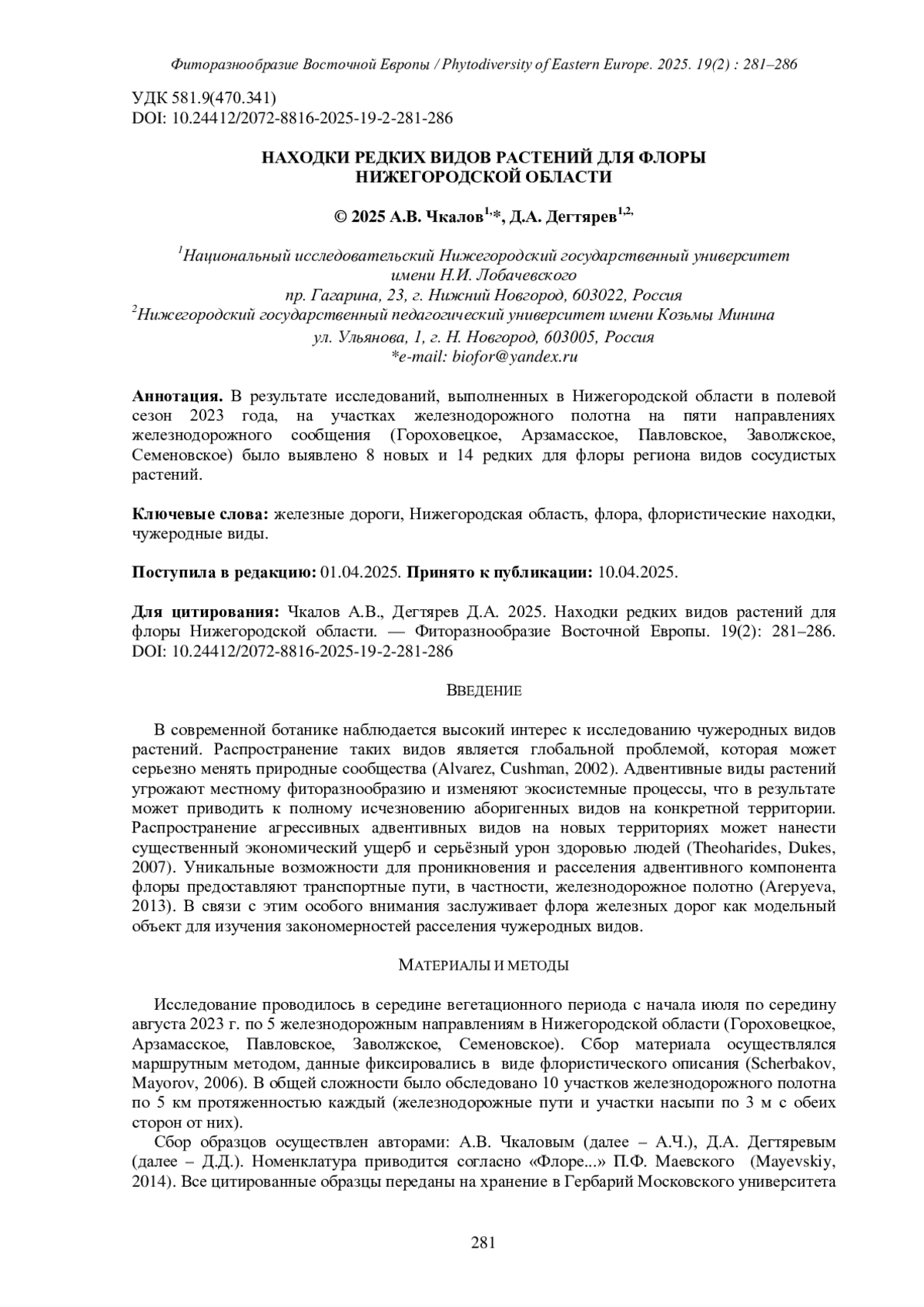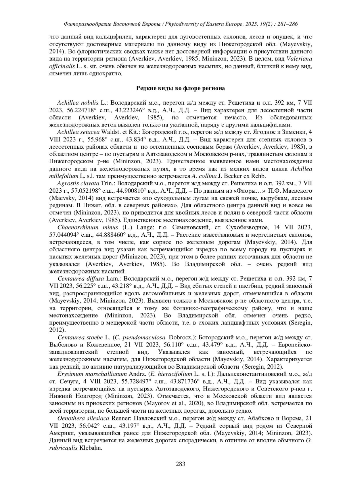ЖЕЛЕЗНЫЕ ДОРОГИ, НИЖЕГОРОДСКАЯ ОБЛАСТЬ, ФЛОРА, ФЛОРИСТИЧЕСКИЕ НАХОДКИ, ЧУЖЕРОДНЫЕ ВИДЫ