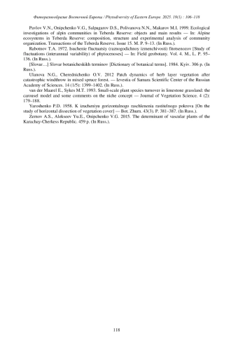 15. [Pavlov et al] Павлов В.Н., Онипченко В. Г., Салпагаров Д.С., Поливанова Н.Н., Макаров М.И. 1999. Итоги комплексных исследований высокогорных экосистем Тебердинского заповедника. - В кн.: Высокогорные системы Тебердинского заповедника: состав, структура и экспериментальный анализ механизмов организации. Труды Тебердинского государственного биосферного заповедника. Вып. 15. М. С. 9-13.