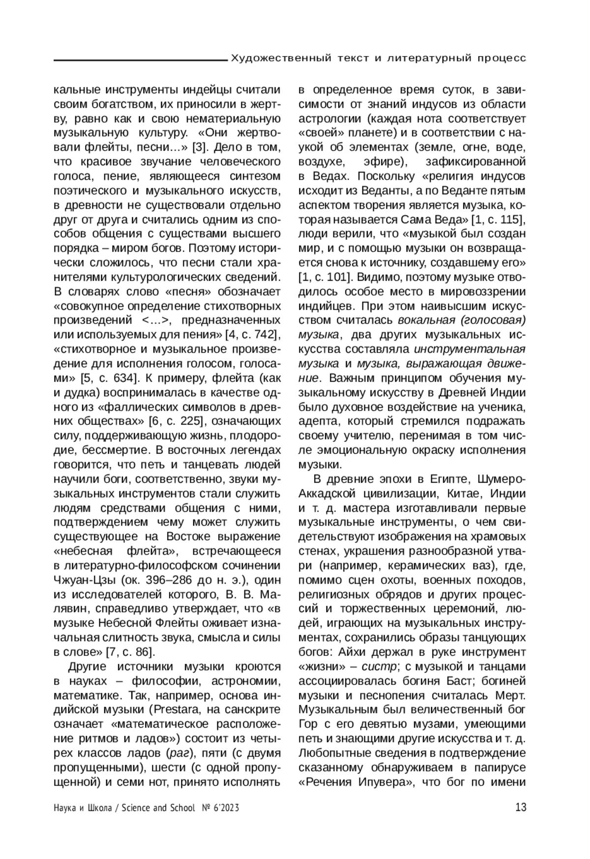 С помощью филологического анализа музыкального искусства в письменных источниках в статье рассматривается парадигма мировосприятия представителями цивилизаций Древнего Востока. Особое внимание уделяется семантической сфере «музыка» как одной из базовых составляющих общей концепции представлений о мире ранних человеческих общностей. На основе древних текстов как феномена восточных культур выявляются символические и сакральные смыслы музыкальных инструментов в контексте строгих канонов традиционных культур. Приводятся документальные свидетельства – первые упоминания о музыкальном искусстве в системе мировидения древнейших государств Востока, легенды, а также произведения более поздних авторов о музыке в контексте национально-культурной специфики первых цивилизаций – Древнего Египта, Месопотамии, Древней Персии, Древней Индии, Древнего Китая.