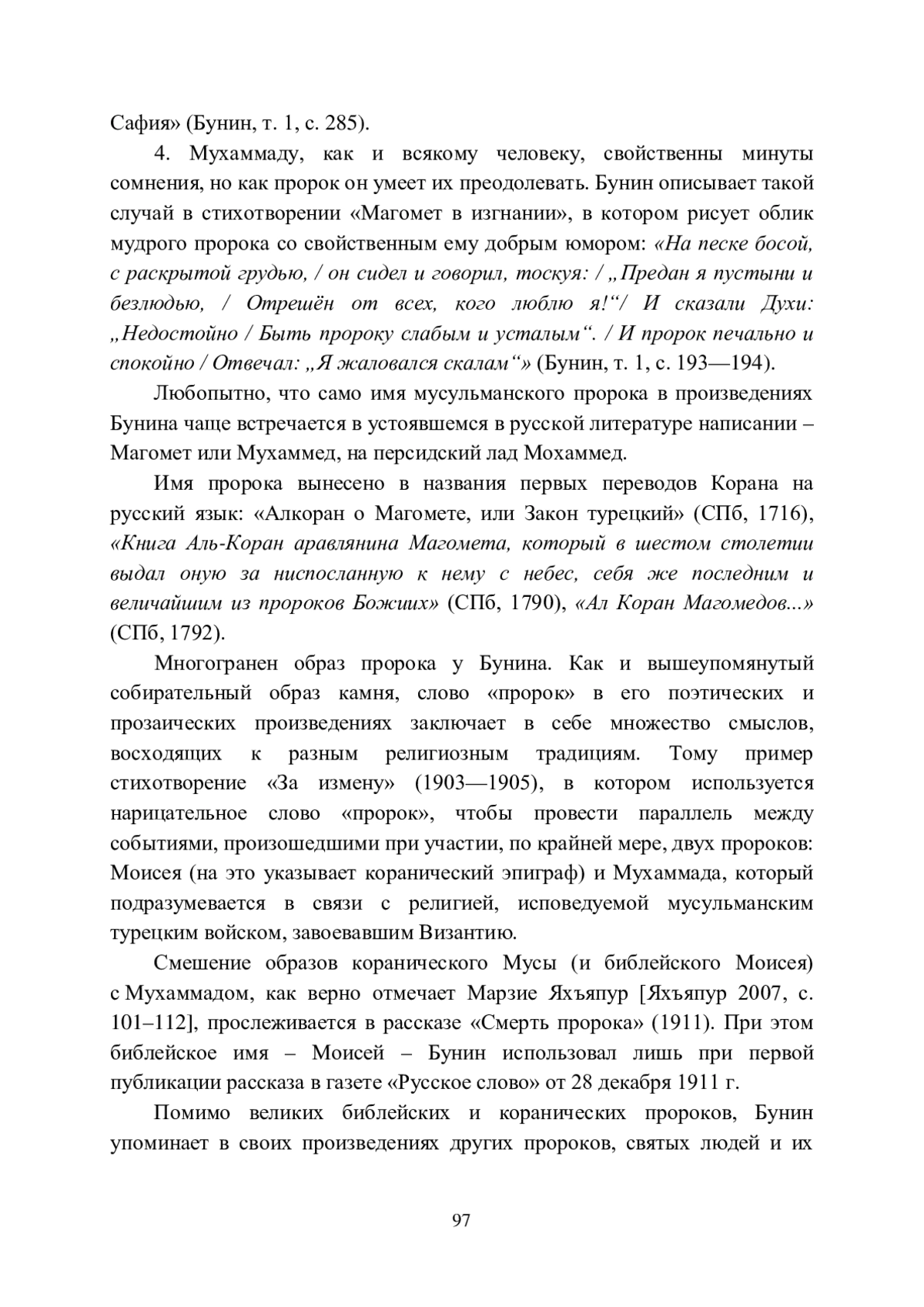 Статья исследует тему пророчества и образов пророков в творчестве И. А. Бунина, показывая, как писатель объединяет библейские и коранические традиции. На материале рассказов, стихотворений и путевых заметок бунинский мир предстает как пространство вечной духовной истории: святые места, священные камни и фигуры Авраама, Измаила, Лота и Гавриила выступают символами нравственного опыта и упадка цивилизаций. Бунин сознательно сохраняет библейские имена при обращении к мусульманским сюжетам, тем самым создавая синкретическую интерпретацию религиозных преданий и подчеркивая единство религиозной памяти человечества.