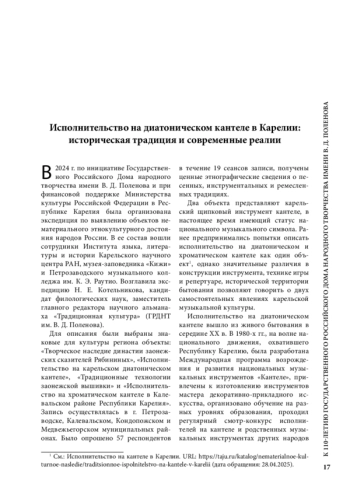 Статья: Исполнительство на диатоническом кантеле в Карелии: историческая традиция и современные реалии (2025)