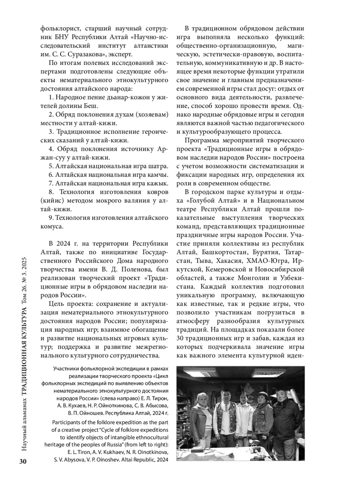 Коллектив Института гуманитарных исследований УрО РАН (ИГИ УрО РАН) начиная с 2022 г. принимает активное участие в реализации проекта «Цикл фольклорных экспедиций по выявлению объектов нематериального этнокультурного достояния народов России», организаторами которого являются Государственный Российский Дом народного творчества имени В. Д. Поленова, министерства и ведомства регионов России, участвующих в проекте при поддержке Министерства культуры РФ.